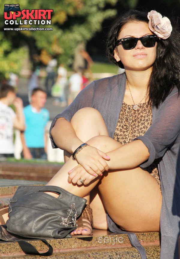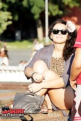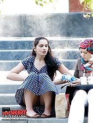Chic babes flash panties up skirts